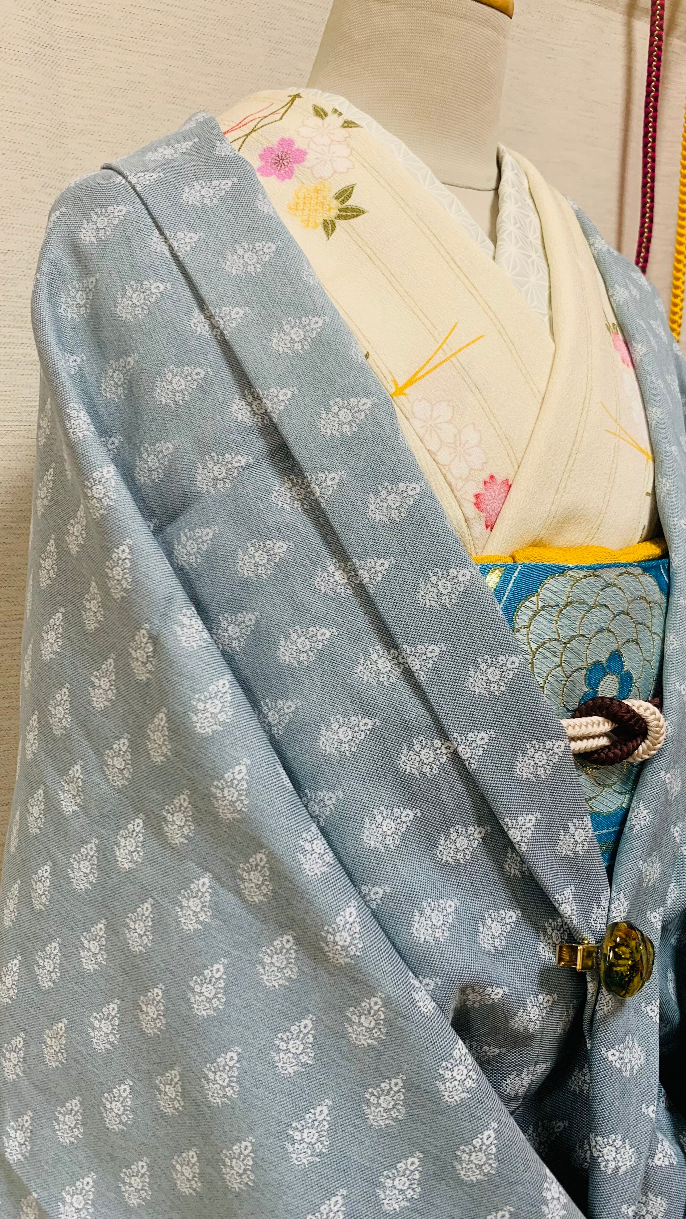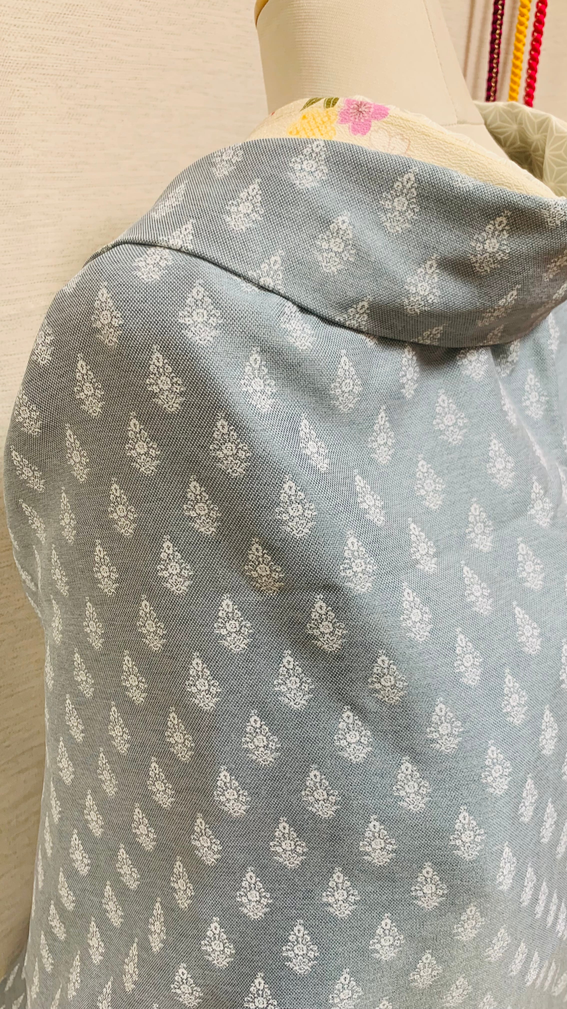 ・一際目立つブルーグレーのお色目に幾何学模様です。